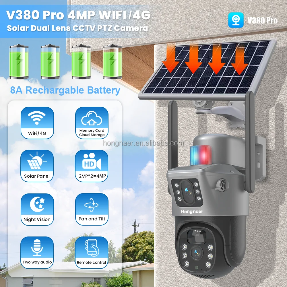 Eseecloud V380 Pro Solar Powered Surveillance Security PTZ CCTV Camera Dual Lens Wireless Outdoor WiFi 4G Sim Card Solar Camera